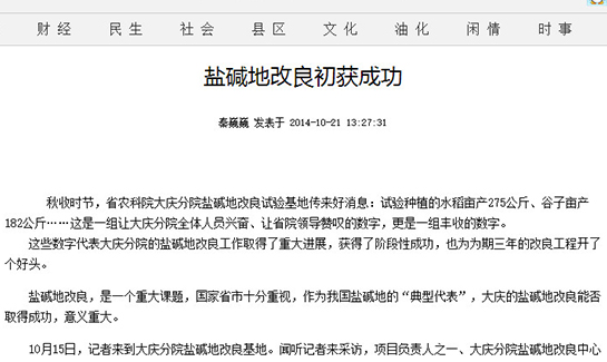 • 大慶市大同區對喜村鹽堿地改良任務